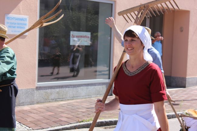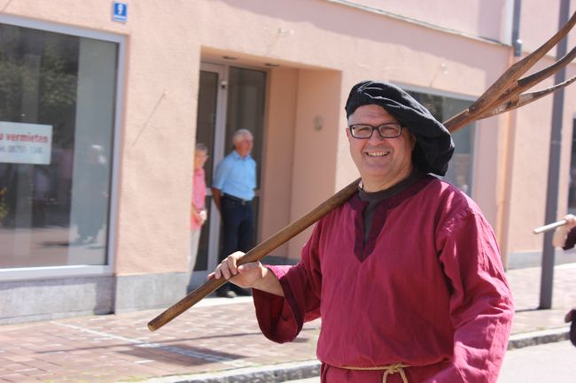 Doch nicht nur die lokale Politprominenz war ein Augenschmaus. Ebenso die Vereine und Privatpersonen, darunter auch Kinder, verkörperten mit viel Liebe zum Detail damalige Zünfte und Handwerksberufe, die heute als „ausgestorben“ gelten. Unter ihnen tummelten sich Figuren wie Gaukler, Knechte, Mägde und Artisten.