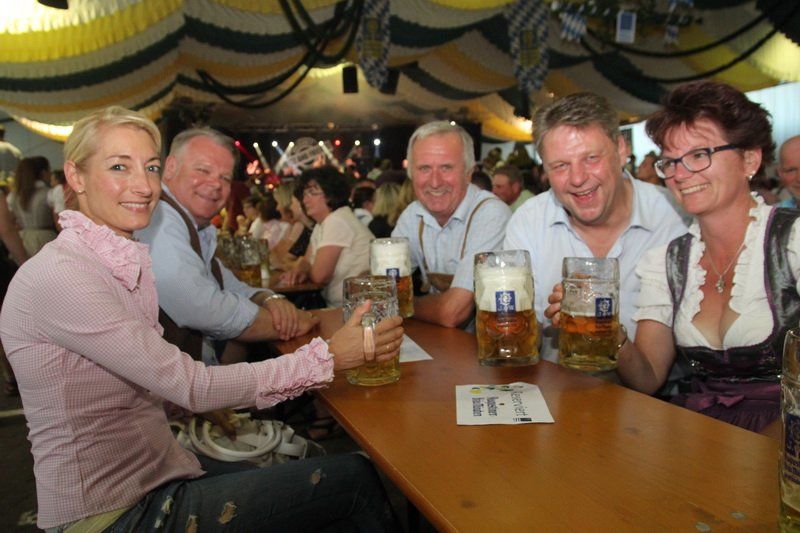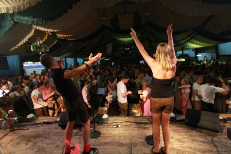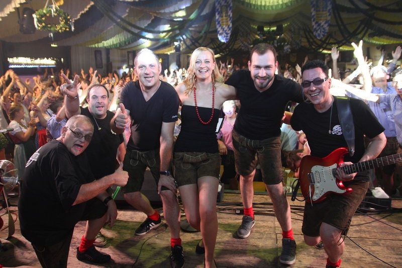 Schon nach dem ersten Song kannten die Wolnzacher kein Halten mehr und starteten den ultimativen Belastungstest der Bierbänke. Und die mussten im Laufe des Abends einiges aushalten, denn Hits und Gassenhauer hatten die Niederbayern mehr als genügend mit im Gepäck. Von Bon Jovi bis Helene Fischer, egal die Halle stand mal wieder Kopf. Aber nicht nur auf den Bänken wurde getanzt, nein, auch Schankkeller Max Meier konnte es sich nicht verkneifen und zupfte zwischen zwei Maßkrügen eifrig an seiner Luftgitarre. „Die Stimmung hier in Wolnzach ist einfach unbeschreiblich“, erklärte Sängerin Chrissi Anetseder. Und so heizten die sechs Niederbayern den Wolnzachern nicht nur gehörig ein, sondern brachten die Volksfesthalle sprichwörtlich zum Explodieren.