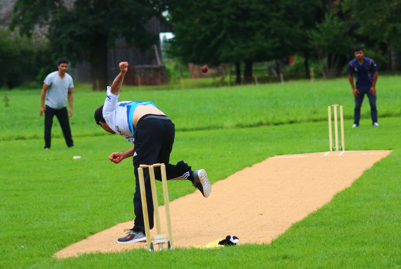 Die ganze Dynamik des Cricket-Sports wird deutlich beim Wurf des "Bowlers" (Werfer).