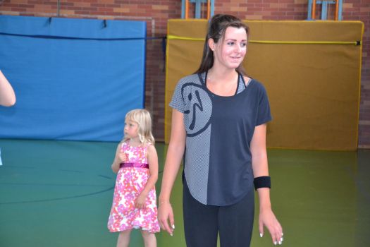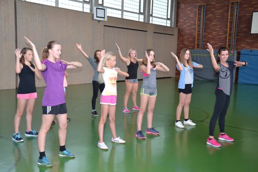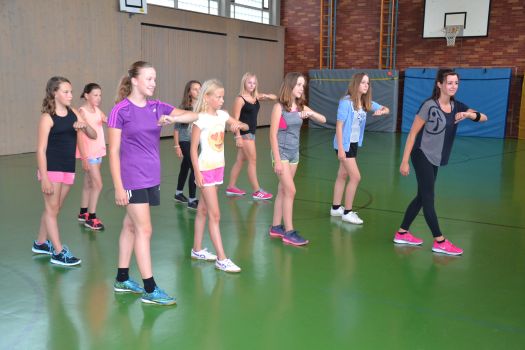 Aus der alten Schulturnhalle erklang laute, fetzige brasilianische Musik. Acht Teenager ab 11 Jahre tanzten Zumba-Schritte nach Anleitung von Zumba-Trainerin Christina Lapp und das Gesamtbild war schon mal ganz gut für den Anfang. Schließlich mussten die Teenies immer nach vorne schauen, welche Schritte oder Handbewegungen Christina Lapp gerade vormacht und dies sofort auch gleich umsetzen. Keine Probleme hatten dabei Gymnastik-Abteilungsleiterin Sigrid Kersten und ihre Abteilungskollegin, die auch mitmachten. Ganz niedlich dabei die kleine Enkelin von Sigrid Kersten, die dabei ihr Bestes gab. Vielleicht hat es den Teenies heute so gut gefallen, dass sie später einmal weiter machen.