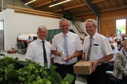 „Zertifizierung, Rückverfolgbarkeit, all das darf nicht auf dem Altar der EU geopfert werden!“ Gerig gab damit auch ein klares Bekenntnis zur staatlich geförderten Forschung ab und lobte die Zusammenarbeit der Gesellschaft für Hopfenforschung und der Landesanstalt für Landwirtschaft. Dort werden, wie der Institutsleiter Peter Doleschel erläuterte nicht nur neue Sorten gezüchtet, sondern auch der Pflanzenschutz und die Hopfentechnik weiterentwickelt.