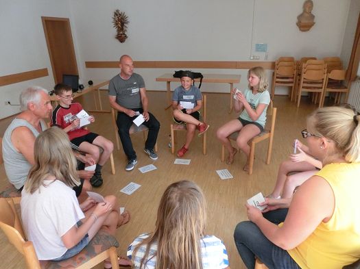 Leider trafen sich nur 6 Kinder im Pfarrsaal, diese waren aber begeistert mit bei der Sache. Rollenspiele, kurze Filmbeiträge und Sketche lockerten die Vorträge auf. Mit Franz Blenninger war ein weiterer Polizist und Jugendbeamter anwesend. Ein ganz wichtiges Thema, so Werther, sei ein gesundes Selbstwertgefühl, das Vertreten einer eigenen Meinung, was auch in einem Frage-Antwortspiel geübt wurde. Die Jugendlichen sollten zu einem kritischen Denken angeregt werden, sollten wissen, dass in den Medien "alles Fake" ist und eine geschönte Wahrheit den Jugendlichen vorgegaukelt wird. Erschreckende Umfragen zeigten z.B., dass sich jedes 5. Kind zwischen 9 und 14 Jahren eine Schönheitsoperation wünsche, um den Idolen aus der Medienwelt nachzueifern. Immer wieder betonte Heinz Werther: "Vertraue deinen Stärken, lebe mit deinen Schwächen, keiner ist ohne Schwächen"! Er warnte vor Oberflächlichkeit und Statussymbolen, den Gefahren des Schönheitswahns und der sozialen Medien.