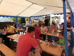 Zahlreiche Vorstandsmitglieder und Helfer hatten sich alle Mühe gegeben, dass alljährliche Sommerfest bestens vorzubereiten, es gab wieder eine große Tombola mit 200 Preisen, ein Glücksrad, dass die Jugendabteilung für die Jugend vorbereitet hatte, und natürlich allerlei kulinarische Schmankerl, von selbstgemachter Limonade über Grillspezialitäten, auch vegetarischen, bis hin zu einem üppigen Kuchenbuffet.