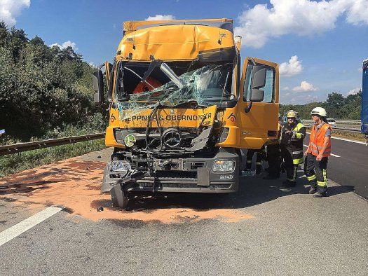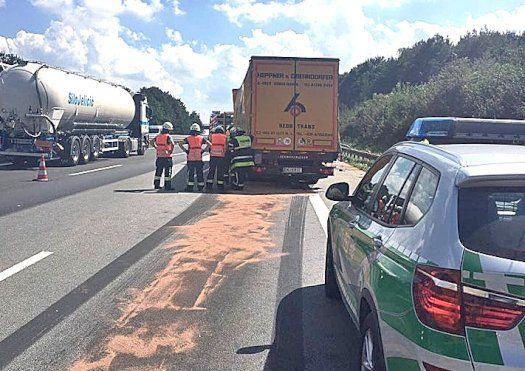 Zwei Fahrspuren sind wegen des Unfalls gesperrt. Der auffahrende Lkw-Fahrer wurde leicht verletzt. Die Feuerwehren von Langenbruck und Reichertshofen binden zurzeit noch die Betriebsmittel und kümmern sich um die Aufräumarbeiten vor Ort.