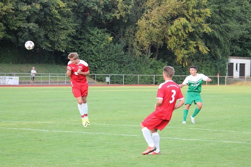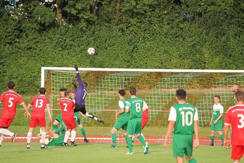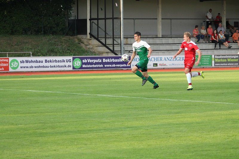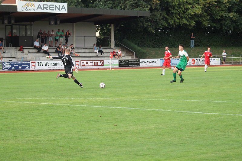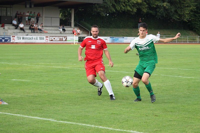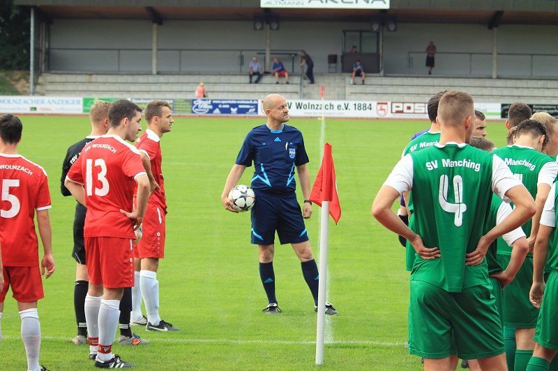 Zu Beginn waren es auch wie erwartet die Manchinger, die spielerisch überzeugten und sich immer wieder Chancen erarbeiteten. Doch mit der Zeit gelang es dem Gastgeber das geplante, nämlich defensiv kompakt zu stehen und intelligent in Zweikämpfe zu gehen und damit besser ins Spiel zu kommen. So kam auch die Elf von Trainer Karl Reisinger zu einigen Chancen durch Konter nach Balleroberungen, oder Fehlern des SV Manchings. Auch in der 34. Spielminute machten die Wolnzacher nach einem Ballverlust der Gäste in einem nachfolgenden schnellen Spiel und nach einem klasse vorgetragenen Konter das 1:0. Marico Oberhardt köpfte den Ball nach Flanke von Florian Schönauer unhaltbar für Gästekeeper Christian Kirzinger ins Tor.