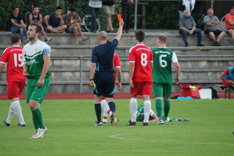 Nach Wiederanpfiff wechselten die zwei Teams nicht nur die Seiten. Der SV Manching nahm das Spiel komplett in seine Hand und drückte nun auf den Ausgleich, was ihnen aber nicht gelang. Also merkte Gästetrainer Cenker Oguz, dass seine Mannschaft noch agressiver und offensiver agieren musste, um hier noch etwas mitzunehmen. In der 60. Minute wechselte er deswegen Agir Imrak für Außenverteidiger Mario Edler ein und stellte auf Dreierkette um. Was sich anfangs noch wirkungslos zeigte, sollte sich jedoch am Ende auszahlen. In der 67. Spielminute sahen die zahlreich erschienen Zuschauer dann ein Foul der Nummer 11 der Wolnzacher- Marico Oberhardt. Der Torschütze des 1:0 sah nach dem erneuten Foul seine zweite Gelbe Karte im Spiel, so war der TSV Wolnzach nun in Unterzahl. Das zwang Karl Reisinger, Spielertrainer der Wolnzacher, der mittlerweile auch selbst auf dem Feld stand, zum Wechseln.