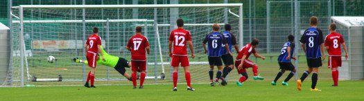 Schon in der 12. Minute war der Offensivdrang von Erfolg gekrönt, als nämlich eine etwas verunglückte Fußabwehr des Gästetorwarts direkt auf dem Fuß von Benedict Geuernich kam und der mit einem platzierten Schuss den Führungstreffer erzielte. Bereits 3 Minuten später hätte Clemens Schiegerl fast erhöht, traf jedoch mit einem satten Schuss aus halblinker Position nur das Lattenkreuz. Spätestens als Josef Blumenfelder kurz nach Beginn der zweiten Halbzeit per Elfmeter das 2:0 erzielte, waren die 3 Punkte für den Gastgeber eigentlich in trockenen Tüchern.