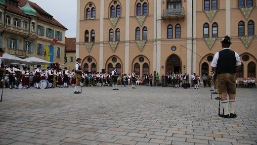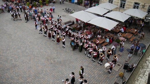 Die Moderation hat in seiner gewohnt leutseligen Art, wieder Stadtrat Peter Heinzlmair übernommen. Es gab Geschichten zu den Kapellen, deren Tracht und die gespielten Stücke, der Mann weiß Bescheid, war er doch in seiner Jugend, Tambourmajor beim Spielmannszug Pfaffenhofen. Den richtigen Takt für die Trommler angeben ist so seine ganz eigene Kunst und hat Gott sei Dank, nichts mehr mit Schlachten auf dem Feld zu tun.