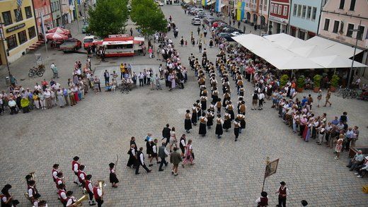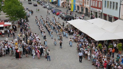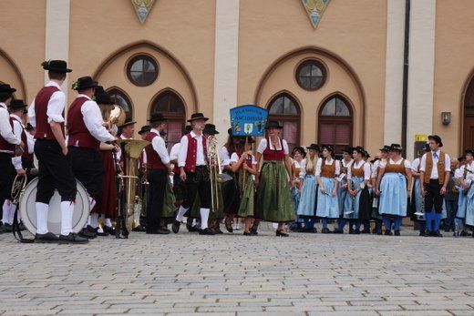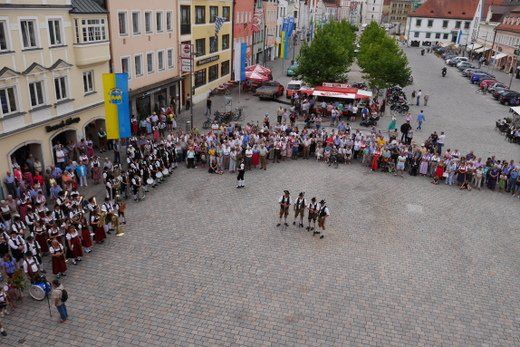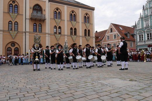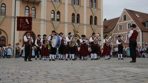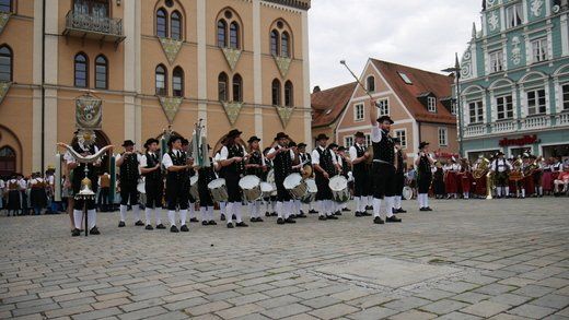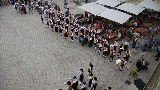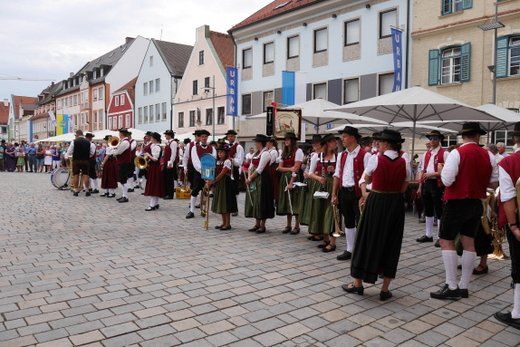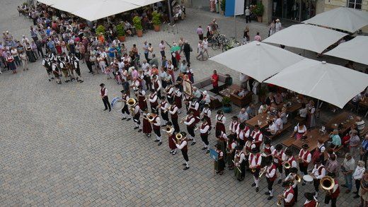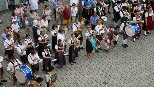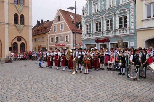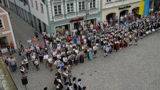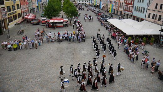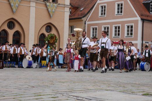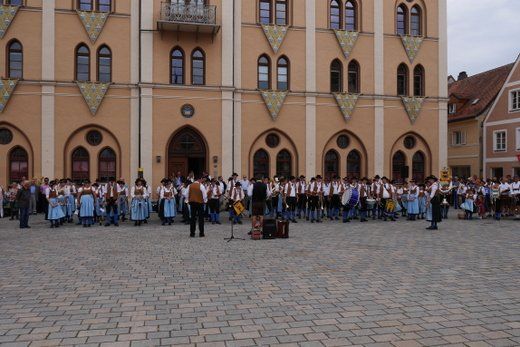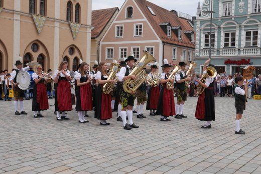 Am Ende ziehen die Musikanten in Formationen, siehe oben, durch die Stadt zum Volksfestplatz, dem Freibier entgegen, blasen macht auch durstig. Mit dabei waren die Stadtkapelle und der Spielmannszug Pfaffenhofen, die Blaskapelle Langenpettenbach, die Schweitenkirchener Musikanten, der Spielmannszug Hörgertshausen, die Blaskapelle Puch, die Blasmusik Aschheim und die Pfaffenhofener Goaßlschnoizer.