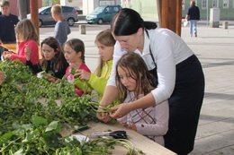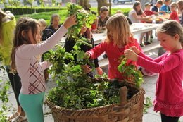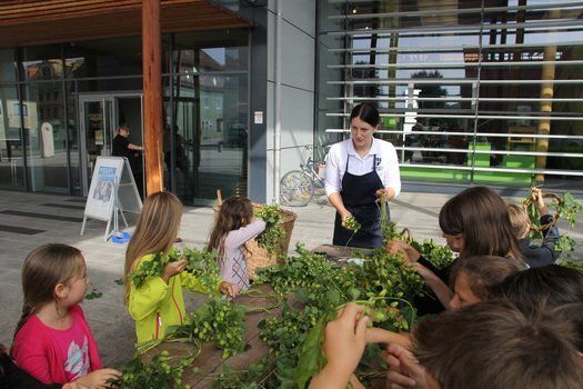 „Natürlich ist der Hopfen ganz wesentlich für das Bier“, erklärte Landwirtin Theresa Lehner, als sie zwei frisch gezupfte Reben vor den Kindern ausbreitete. Doch ging es an diesem Tag nicht nur darum, wie das „grüne Gold“ in den Gerstensaft kommt, sondern die junge Landwirtin lud dieses Mal zum Basteln ein. Selbst einen Hopfenkranz gestalten und dabei den Hopfen einmal hautnah erleben, das fasziniert auch heute noch viele. Schon beim Abreißen der „Sträußerl“ konnte man die Freude in den Kinderaugen sehen. Danach war ein bisschen Fingerspitzengefühl gefordert, denn mit einem Stück Draht mussten diese dann am Kranz befestigt werden. „Es ist einfach schön zu sehen, mit welcher Begeisterung die Kinder aus einer frischen Rebe einen wunderschönen Hopfenkranz basteln“, so Lehner.