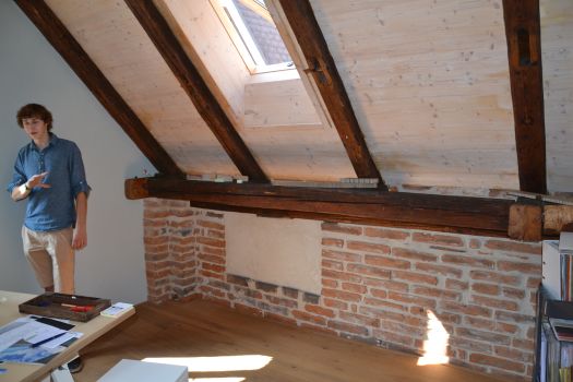 Mitarbeiter Johannes Haslauer konnte interessierten Besuchern viel zu dem alten Gebäude erklären und sie herum führen. Bevor das Gebäude von Max Hechinger renoviert wurde, lebte und arbeitete dort ein Architekt, der schon einmal das dankmalgeschützte Haus durch einen Neubau ersetzen wollte, aber keine Genehmigung dafür erhielt. Max Hechinger hat das Gebäude mit viel Aufwand und Liebe wieder hergerichtet und nutzt es als Architekturbüro.