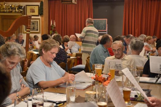 Während draußen in den Hopfengärten die Traktoren mit ihren Abreißgeräten die Hopfenstränge herunterreissen, verladen und zu den Höfen fahren, war beim Wirtshaussingen in Fahlenbach auch die Zeit für "Hopfenlieder" angesagt.