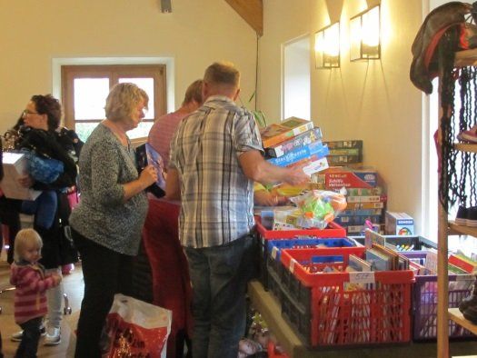 Mit übersichtlich sortierter Kleidung und Spielsachen auf großen Tischen, vom Organisationsteam bestens vorbereitet, bot der Basar wieder eine wahre Fundgrube an gut erhaltenen Sachen und bei drei aufgebauten Kassen gab es beim Bezahlen kaum Wartezeiten. Abgerundet wurde das Angebot durch ein reichhaltiges Kuchenbuffet, das ebenfalls wieder großen Anklang fand.