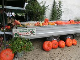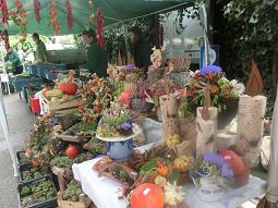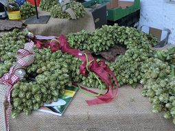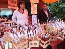 Trotzdem fanden sich, vor allem in den Regenpausen, nicht wenige Besucher ein, die zwischen den liebevoll dekorierten Ständen flanierten, und das Eine oder Andere mit nach Hause nahmen. Besonders beliebt wieder die Dekorationen aus Hopfen, Kränze und Gestecke, aber auch Kulinarisches wie Säfte, Liköre, Honigsorten, Obst und Gemüse, Würste und Käsevariationen. Schmuck, Teppiche, Gestricktes, warme Hausschuhe und Trachtengwand - alles war da, was zu einem Bauernmarkt gehört.