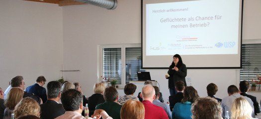 Die Planung der Veranstaltung "Geflüchtete als Chance für meinen Betrieb" basierte auf einer Teilnehmerzahl von ungefähr 40 Interessierten, die sich ein Bild machen wollten über Möglichkeiten, Flüchtlinge in den eigenen Betrieb integrieren zu können. Gekommen waren letztendlich mehr als 60 Teilnehmer, was Beleg dafür sein mag, wie sehr einerseits Industrie, Handel und Handwerk in der Region auf das noch schlummernde Potential der Asylbewerber setzen, andererseits auch ihren Beitrag zur Integration leisten wollen.