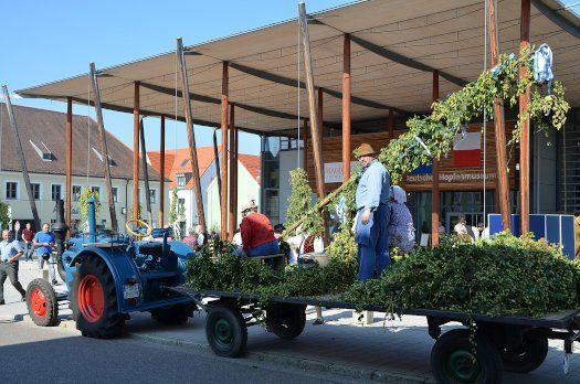 Erinnerungen an frühere Zeiten wurden bei diesem Anblick in so manchem Zuschauer wieder auferweckt: Die Wolnzacher CSU feiert am heutigen Sonntag ihr Hopfenzupferfest - passend bei strahlend weiß-blauem Himmel vor dem Deutschen Hopfenmuseum und mit einem alten Gefährt. Allerdings gibt es einen kleinen Wermutstropfen am Tag ganz im Zeichen des Bieres.