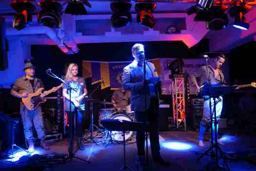 Samstagabend verwandelte sich die ehemalige Brauerei wieder in eine Musikbühne. Wenn die Leipziger Band Aeroplane zum Landeanflug ansetzt, ist beste Konzert-Stimmung garantiert. Die Crew setzt auf sehr eigenwillige Piloten-Outfits gepaart mit Cover-Musik aus drei Jahrzehnten. Dabei bieten sie neben Rock und Pop auch Songs aus Funk und Soul dar, stimmgewaltig, gut gelaunt und energisch. Beim kräftigen Sound, den bekannten Songs und der Darbietung der vier Musiker ging das Publikum sofort begeistert mit.