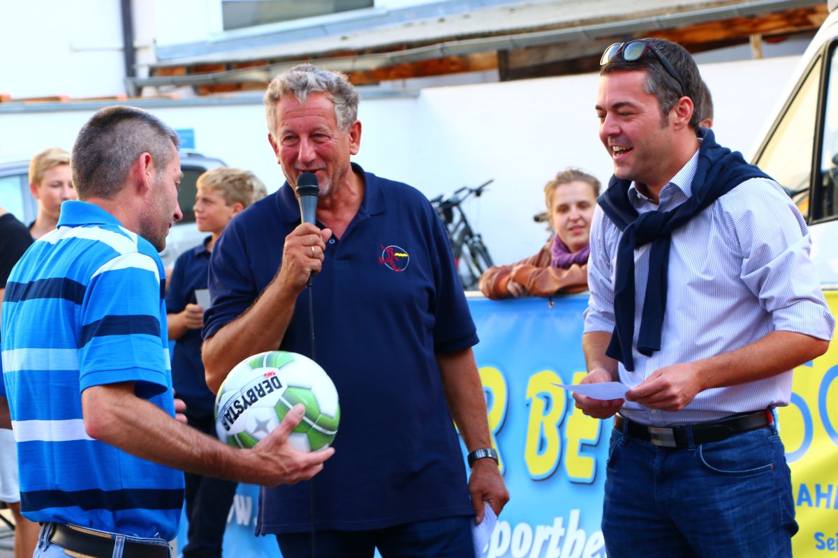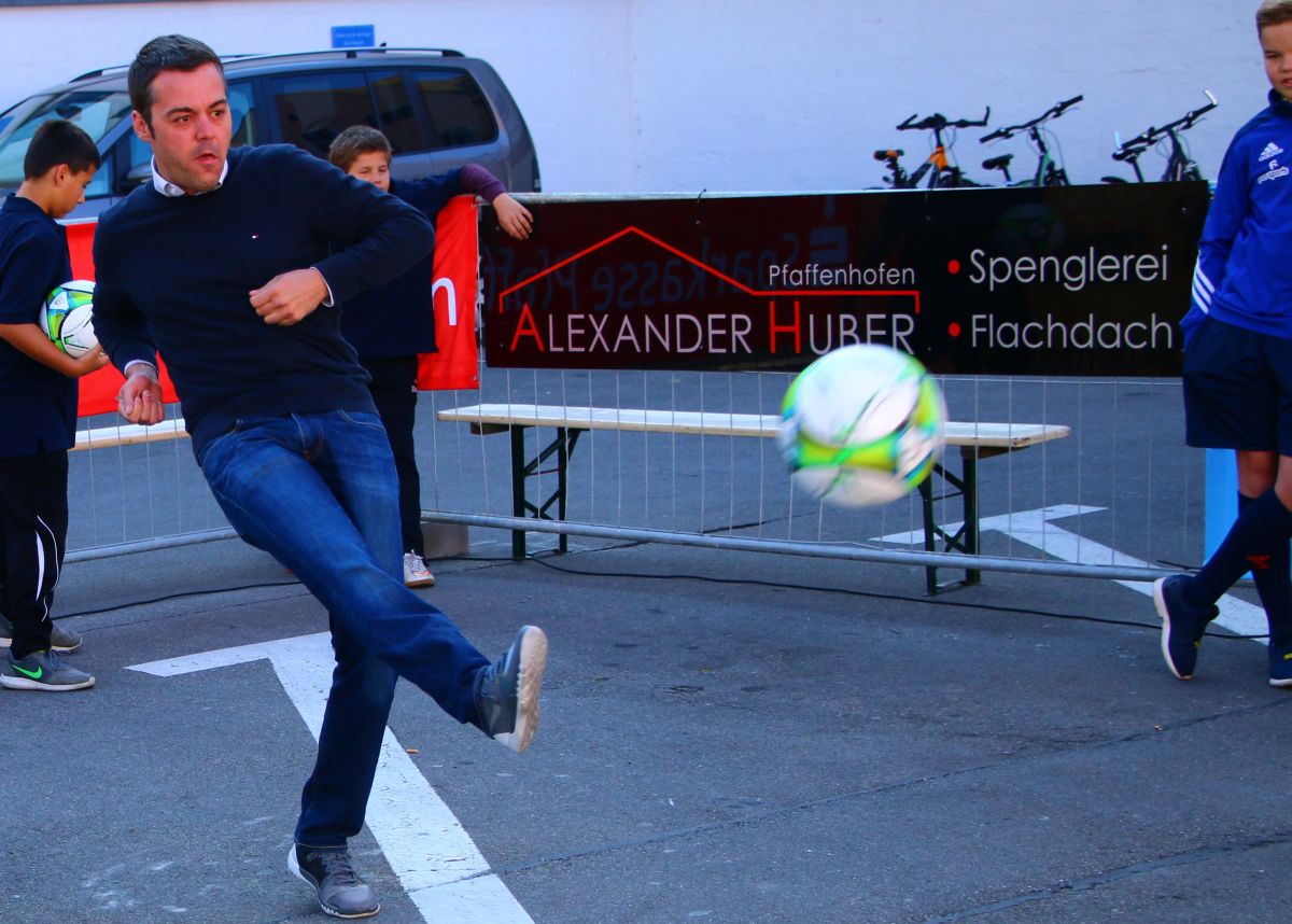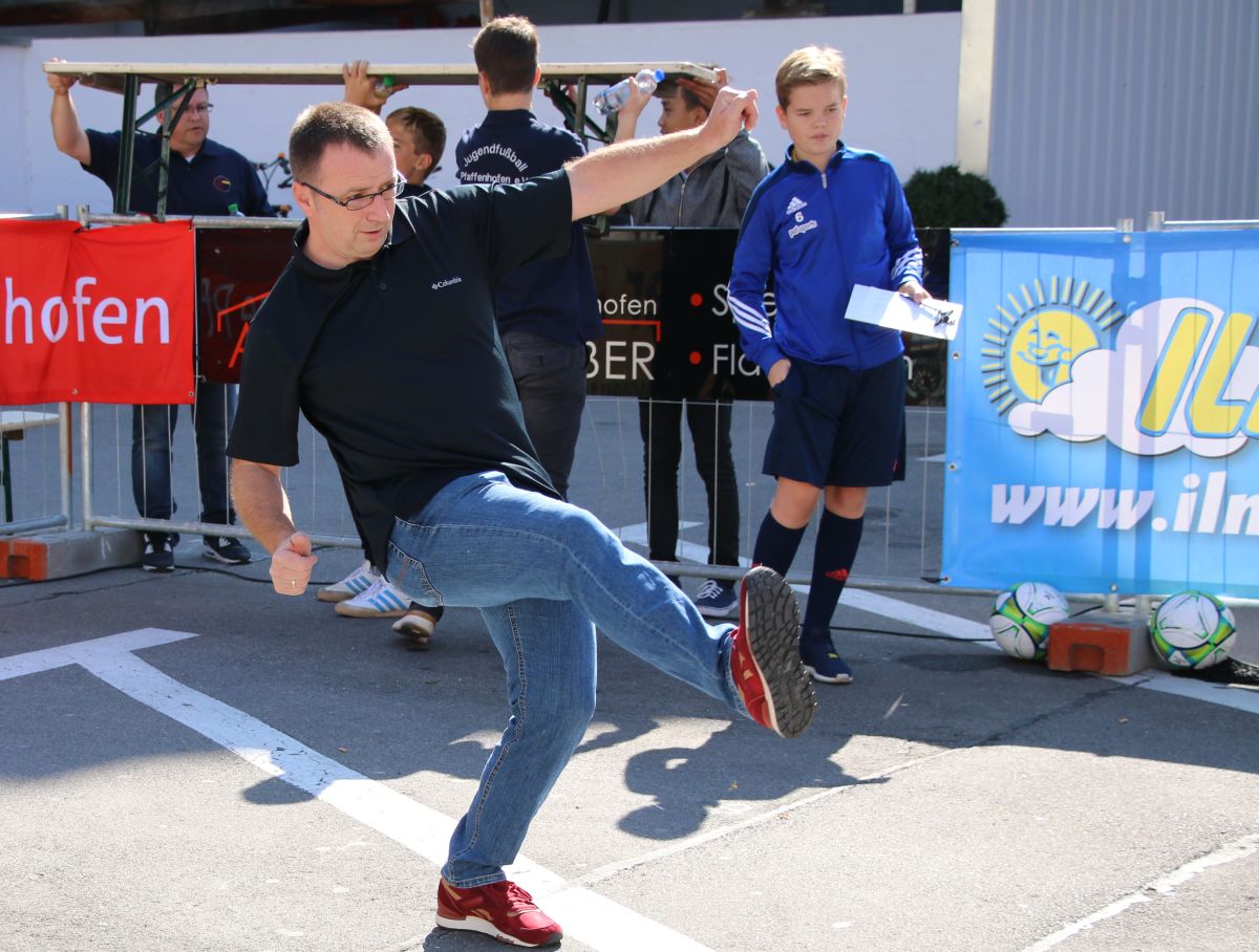 Als Fan der Stadtmeisterschaft 2016 im Torwandschießen erwies sich auch Bürgermeister Thomas Herker, der gleich am Morgen zusammen mit seinem Sohn der erste Teilnehmer des Wettbewerbs war und es sich nicht nehmen ließ, auch bei der Siegerehrung persönlich teilzunehmen. Eine interne Rathaus-Meisterschaft konnte er dabei mit einem Treffer für sich entscheiden, denn weder die ebenfalls teilnehmenden Stadträte Albert Gürtner noch Martin Rohrmann trafen ins Runde. Der Bürgermeister zeigte sich von den Zielen und dem Engagement des Jugendfußball Fördervereins derart beeindruckt, dass er sogleich eine Mitgliedschaft unterschrieb und anwesende Zuschauer zu selbigem ermunterte.