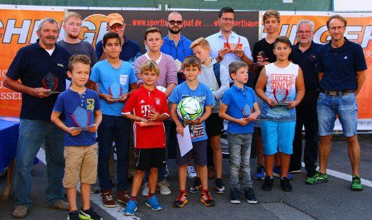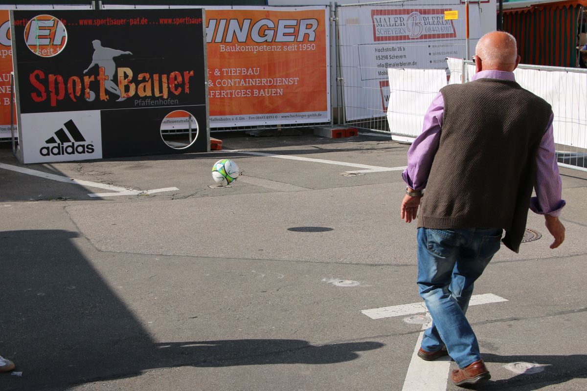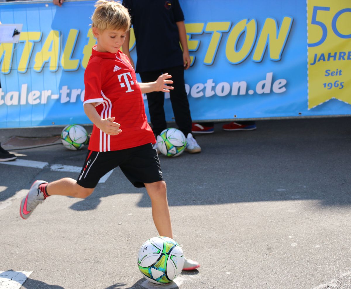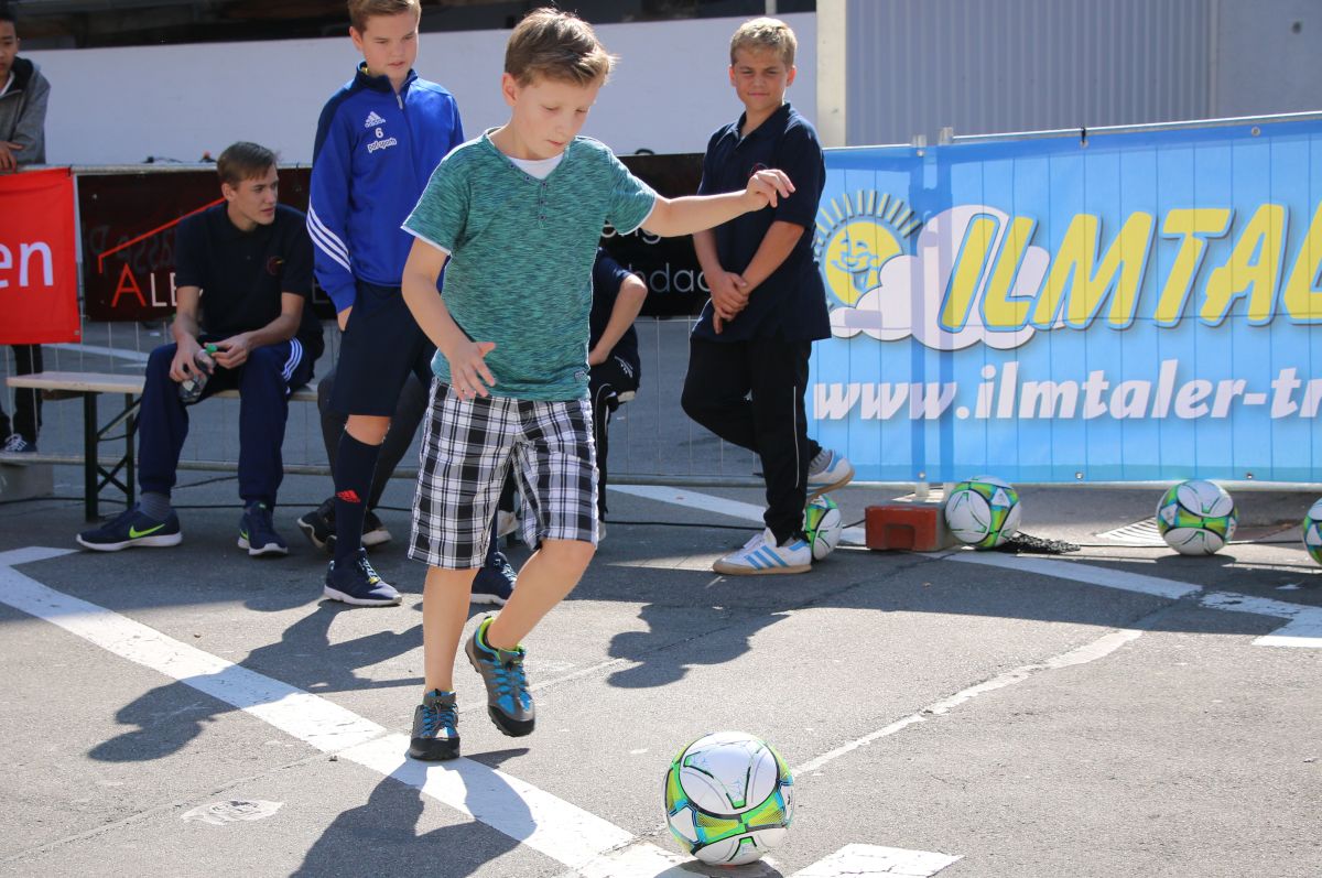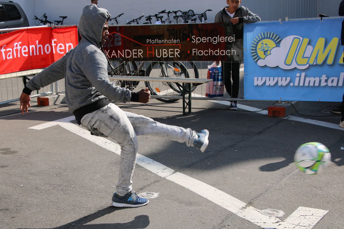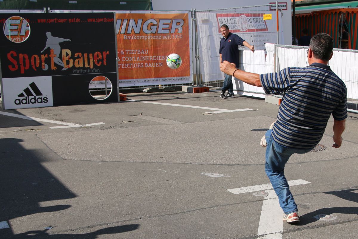 Tobias Abeltshauser, 8 Jahre alt und aus Euernbach, heißt der jüngste Pfaffenhofener Stadtmeister 2016 im Torwandschießen. Je einmal traf er rechts unten und links oben und konnte damit Finn Hein (Scheyern, 6 Jahre) und Louis Colbow (Pfaffenhofen, 8 Jahre) auf die Plätze verweisen. Adonis Buzhala ist (noch) 12 Jahre alt und kommt aus Reichertshausen; zweimal versenkte er rechts unten, einmal links oben, was ihm in Summe den Titel bei den Jugendlichen einbrachte. Er erhielt ebenso wie der Zweit- (Maximilian Tomic, 11 Jahre, Allershausen) und Drittplatzierte (Yeremy Colbow, Pfaffenhofen, 13 Jahre) einen wunderschönen Pokal und einen Einkaufsgutschein von Sport Bauer.