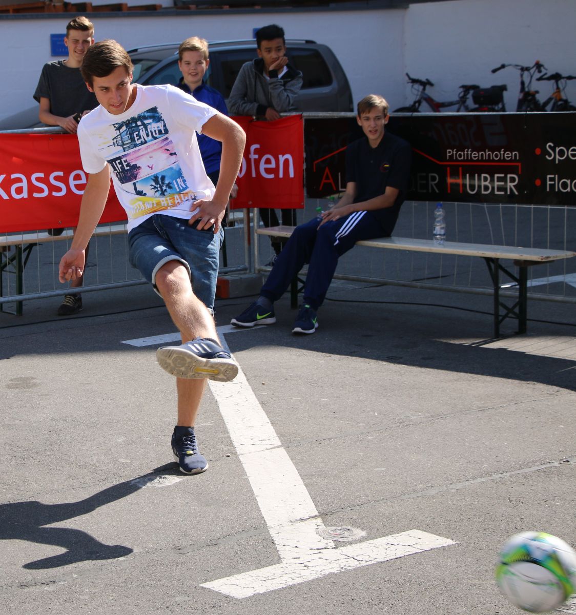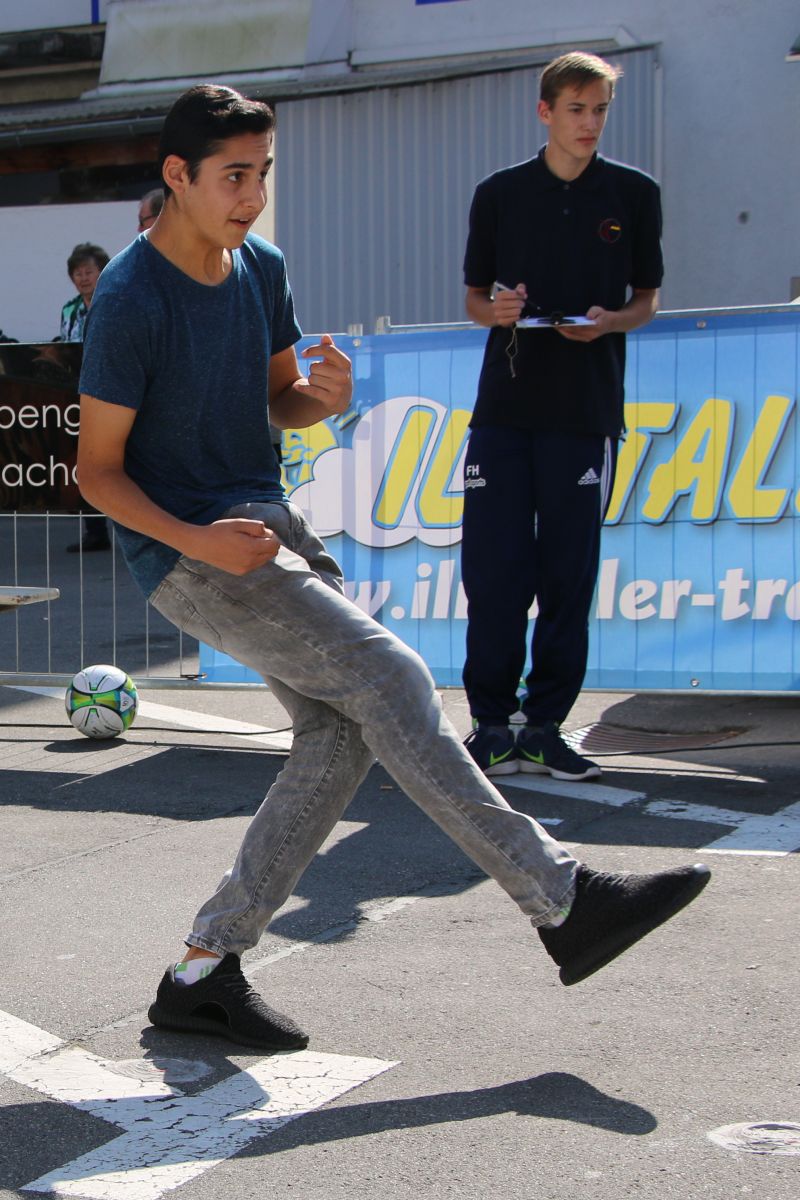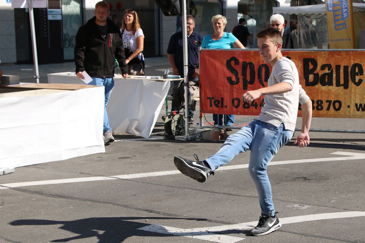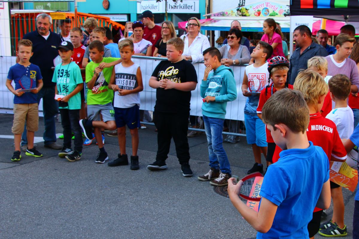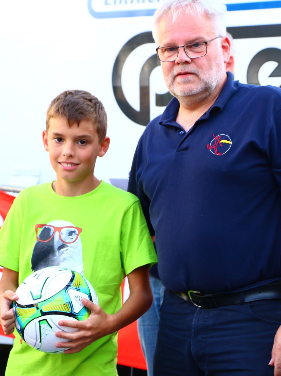 Tobias Abeltshauser, 8 Jahre alt und aus Euernbach, heißt der jüngste Pfaffenhofener Stadtmeister 2016 im Torwandschießen. Je einmal traf er rechts unten und links oben und konnte damit Finn Hein (Scheyern, 6 Jahre) und Louis Colbow (Pfaffenhofen, 8 Jahre) auf die Plätze verweisen. Adonis Buzhala ist (noch) 12 Jahre alt und kommt aus Reichertshausen; zweimal versenkte er rechts unten, einmal links oben, was ihm in Summe den Titel bei den Jugendlichen einbrachte. Er erhielt ebenso wie der Zweit- (Maximilian Tomic, 11 Jahre, Allershausen) und Drittplatzierte (Yeremy Colbow, Pfaffenhofen, 13 Jahre) einen wunderschönen Pokal und einen Einkaufsgutschein von Sport Bauer.