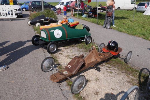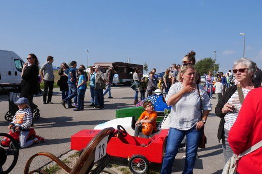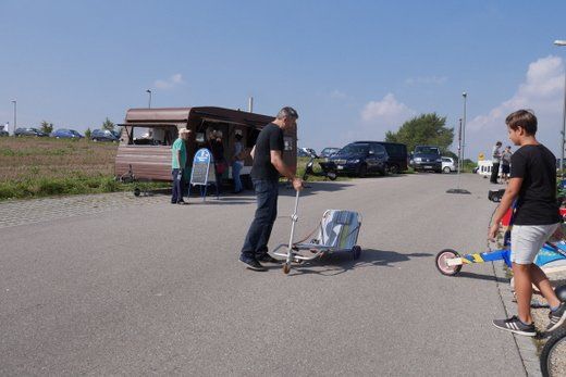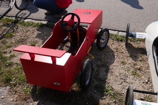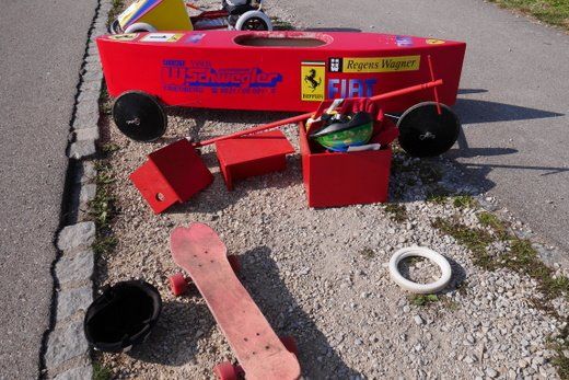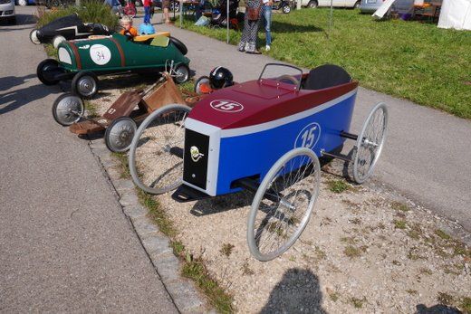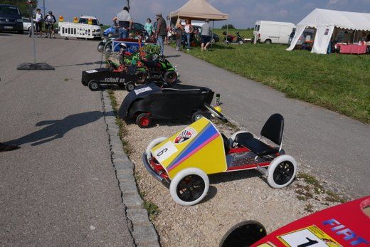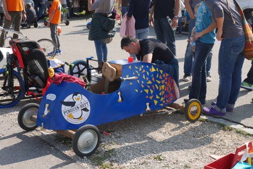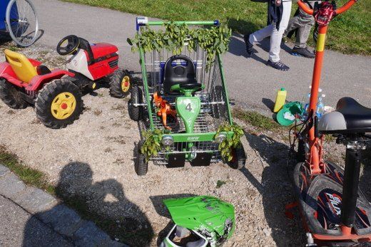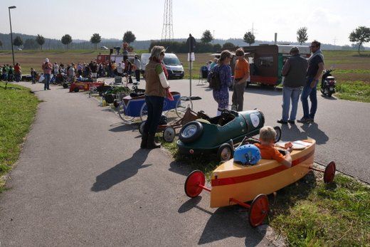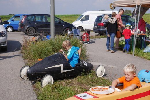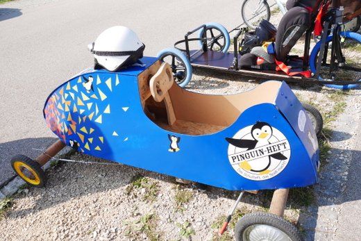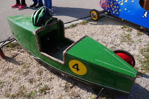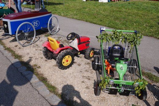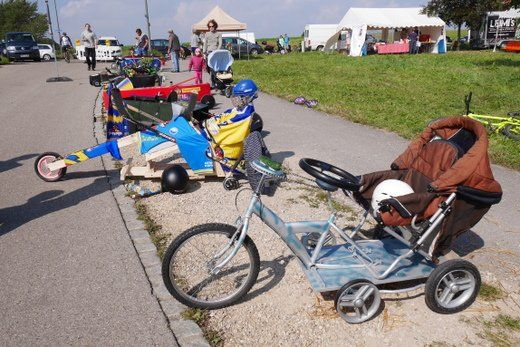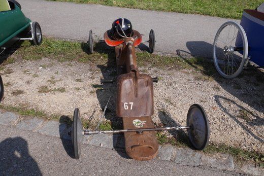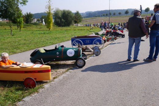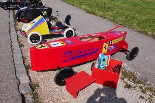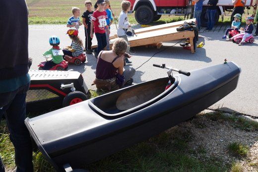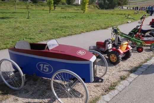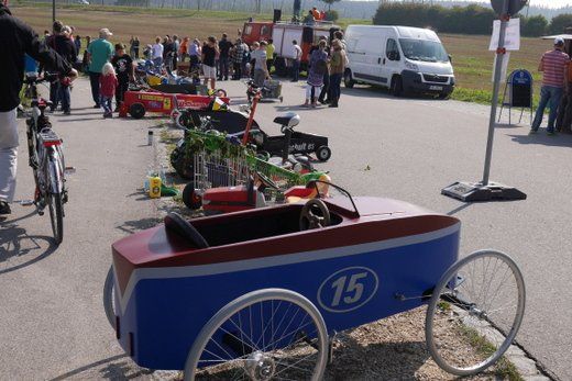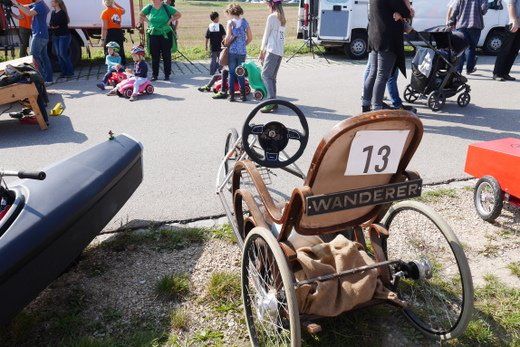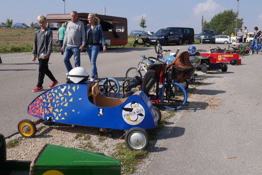 Vom umgebauten Schaukelstuhl, einem ursprünglichen Einkaufswagen, bis zur edlen Polyester Karosse, war alles vertreten, was irgendwie fahrtauglich erschien. Drei der Gefährte hatten sogar Oltimerstatus, sie kamen aus einer Zeit in der die Amerikaner, kurz nach dem Krieg in Pfaffenhofen, tatsächlich Seifenkistenrennen abhielten. Preise waren damals vorwiegend Naturalien, Schnaps und Zigaretten, was eine rege Beteiligung und einen echten Wettkampf provozierte.