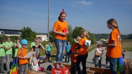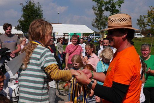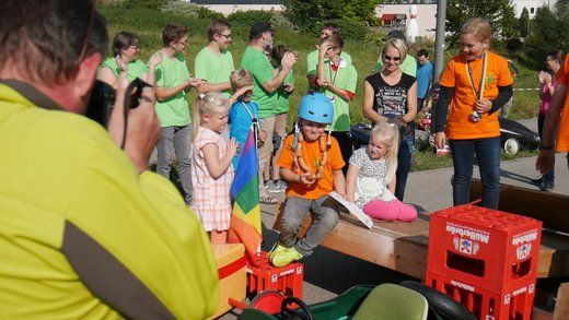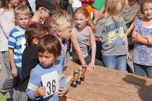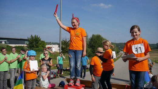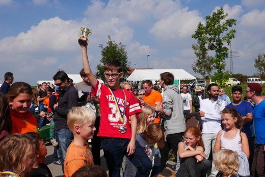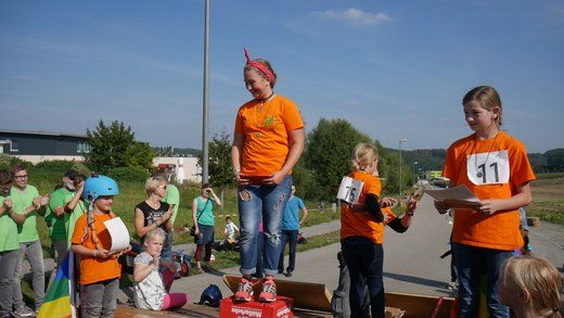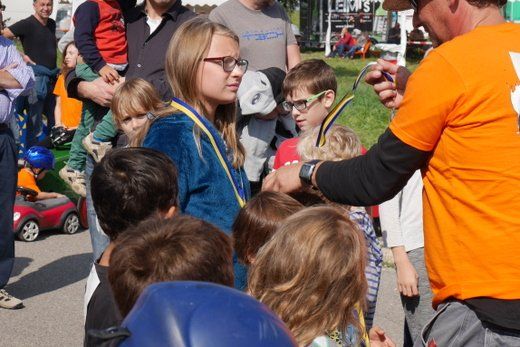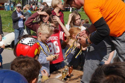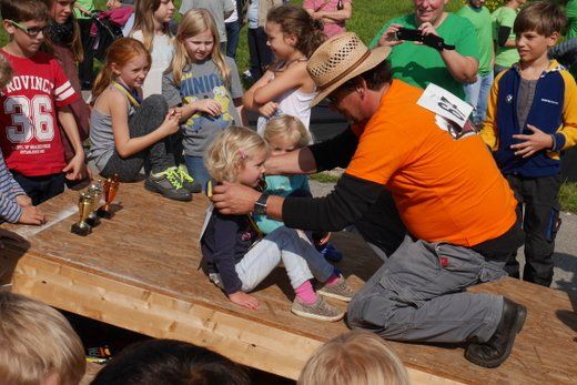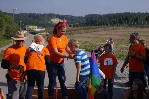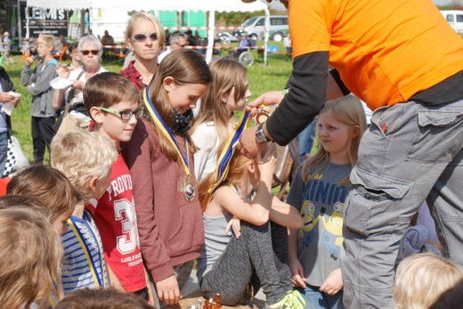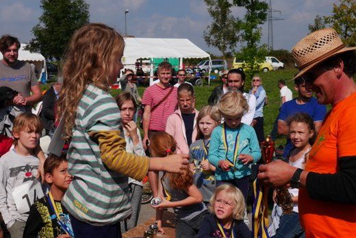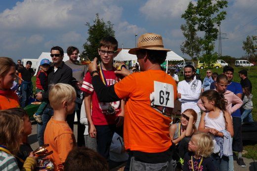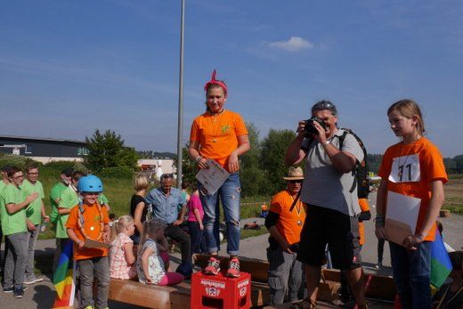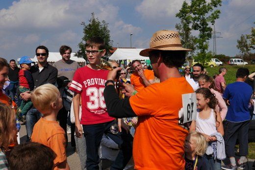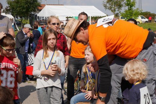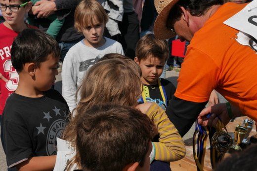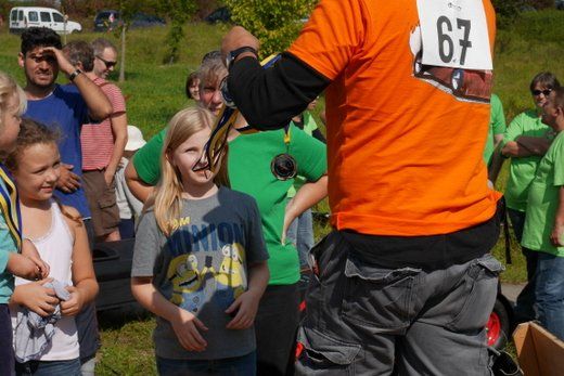 Schnaps und Zigaretten gab es für die vorwiegend jungen Lenker der Kisten natürlich nicht, Medaillen und Pokale für alle Teilnehmer incl. Sieger, einen Wurstkranz, einen Buchgutschein und eine Armbanduhr aber, wurden dennoch in Anlehnung an die Geschichte den ersten drei Siegern übergeben. In die Wertung kamen übrigens nur Kinder, die schnellsten Erwachsenen bekamen eine Rückstufung.