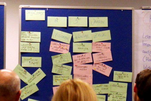 Um die Zukunft ging es im Anschluss bei den sogenannten Denkfabriken. In drei offenen Gruppen wurden die Themen Vernetzung, Standortentwicklung, also das Zusammengehen von Kreativen und Wirtschaftsförderer bearbeitet. Die Vision, wo beide Gruppen und die Stadt mit ihren Bemühungen in fünf Jahren stehen, zeigten die Schautafeln mit vielen Vorschlägen am Ende des Tages.
