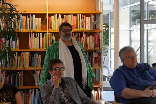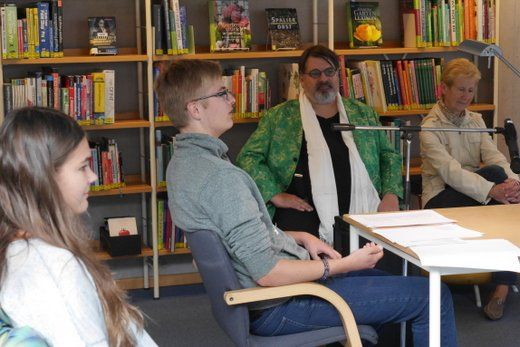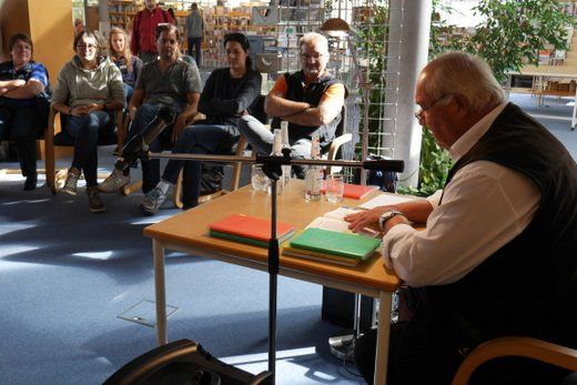 Die „Silbenschmiede Pfaffenhofen“ eine offene Gruppe für alle Autoren, Hobbyschreiber, Dichter und Wortartisten, in und um Pfaffenhofen. Früher haben sie im Brezenhaus neben dem Scheyren Gymnasium ihre offenen Lesungen abgehalten und von dort scheint auch das salzige Laugengebäck mit in die Kreisbücherei gewandert zu sein. Der neue Leiter des Büchertempels heißt Stephan Ligl, der mit dem Lutz-Stipendiaten Johann Reißer und dessen Land Maschinen Paradies, die Lesebrauchbarkeit seiner neuen Wirkungsstätte schon erfolgreich bestätigt hat.
