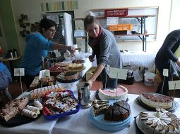 Organisatoren waren auch diesmal wieder die Damen des Basarteams unter der Leitung von Anni Rank. Sie bereiteten nicht nur den Basar vor sondern sorgten auch für ein üppiges Kuchenbuffet, das reißend Abnehmer fand.