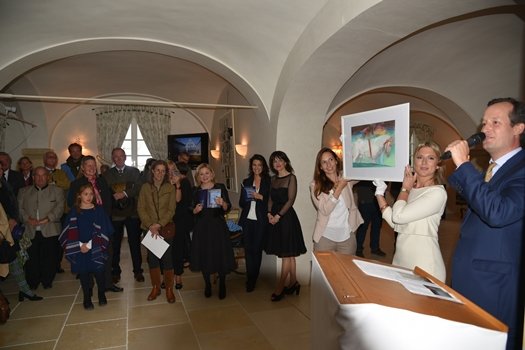 Moritz Freiherr von der Heydte, Direktor des Auktionshauses Artcurial Deutschland, regte nach Eröffnung der Ausstellung “METAMORPHOSES” als Auktionator beredt zum Mitmachen und Bieten an. Dabei sind hochwertige Objekte und Bilder etwa von Taisia Korotkova, Denis Prasolov oder auch Natacha Ivanova unter den Hammer gekommen.