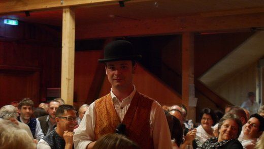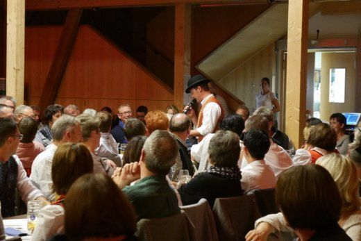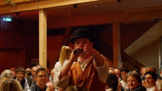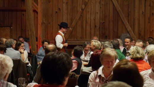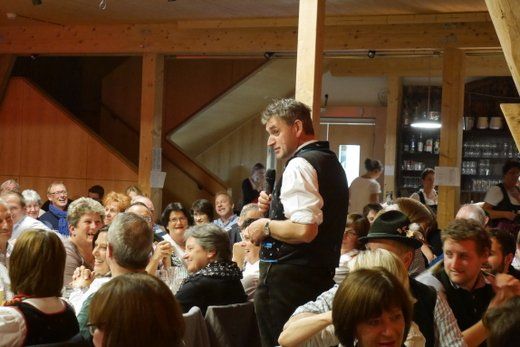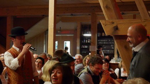 Quer durch die Reihen an großen und kleinen Bedienungen vorbei, kämpfte sich der Wortwitzakrobat zu seinen vermeintlichen Opfern. Gscherd scho, aber nie unter die Gürtellinie, wer ausgsunga werd, darf sich eigentlich bedanken, nichtoriginelle Menschen Bedürfen keinem gesungenen Vers.