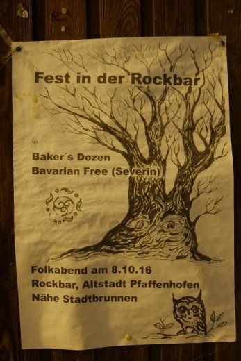 Nach erfolgreicher Osteuropatournee hat der Stilwirt mit Band (Muskel), die Einladung von Melanie Irl und Edgar Leber (GAGA), die Betreiber der Rock Bar an der Unteren Stadtmauer 2a, (beim Schlumpf rechts nei) in Pfafahofa angenommen und hod einfach aufgspuid. Als Anheizer war Bavarian Free (Severin), schlecht zu verstehen und kaum zu sehen, Leid da miasts eich was eifoin lassen.