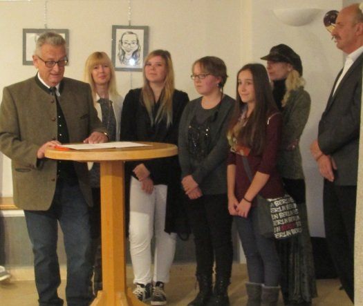 Die Besucherzahl blieb gestern Abend zwar überschaubar, trotzdem war die Vernissage für alle Beteiligten ein Erfolg. Zur ersten Ausstellung der jungen Künstlerinnen war Kulturvertreter Alois Siegmund in den Rathauskeller gekommen und stellte sie in seiner Begrüßungsrede kurz vor. Linda Weiß absolvierte die FOS in Karlsfeld und ist seit diesem Jahr auf der Macromedia Hochschule in München. Isabel Rack hat viel Spaß an der Kunst und besucht derzeit die 9. Klasse am Hallertau Gymnasium Wolnzach. Die dritte im Bunde ist Daniela Popp. Sie macht gerade eine dreijährige Ausbildung zu Einzelhandelskauffrau und begeistert sich seit jeher für zeichnen. Alle drei Mädchen sind schon seit etlichen Jahren bei Nathalie Ponsot im Unterricht und jede von ihnen hat außerordentliche Begabung. Vervollständigt wird die Ausstellung von der Karikaturistin Nathalie Beck. Sie studierte 1996 Mode- und Kommunikationsdesign in München und ist seit 2000 hauptberuflich als Grafik- und Werbedesignerin tätig. Nathalie Beck ist für ihre Karikaturen in der „Wolnzacher Woche“, im „Wolnzacher“, sowie im Wolnzacher Karikaturenkalender mittlerweile weit über die Landesgrenze hinaus bekannt.