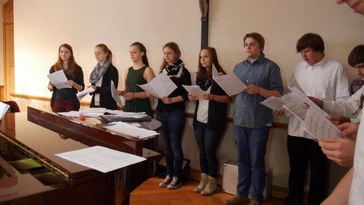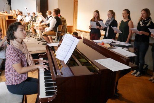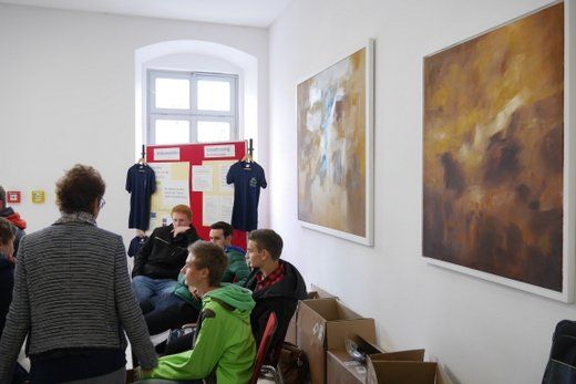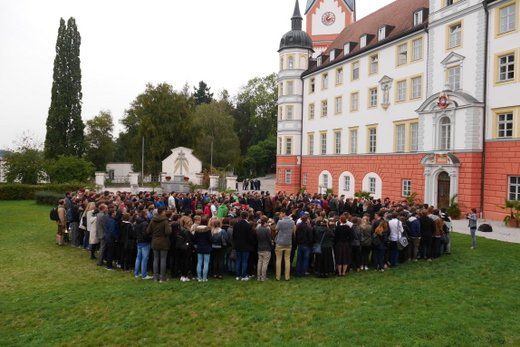 Zum Ende hin platzierten sich alle Teilnehmer zu einem großen Smiley im Klosterhof. Auf Kommando des Fotografen im zweiten Stock bewegten sich die Teilnehmer sternförmig nach außen, mit einem Lächeln gehen, eine schöne Idee.