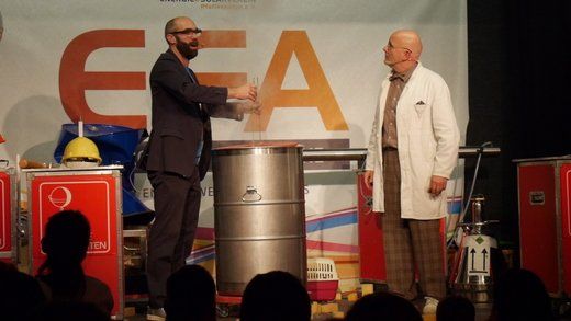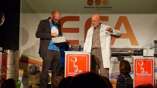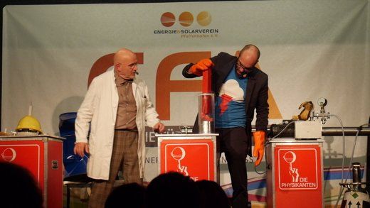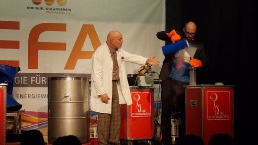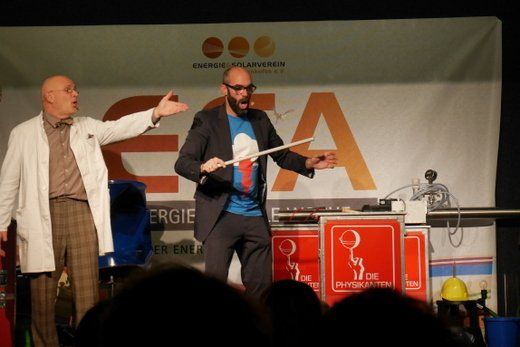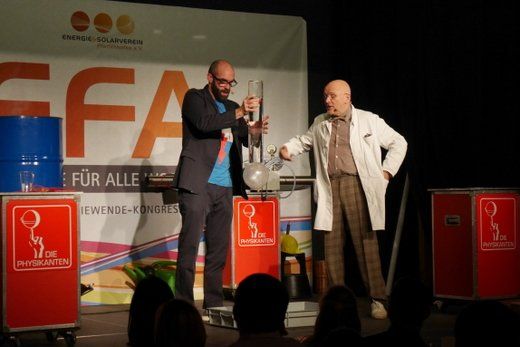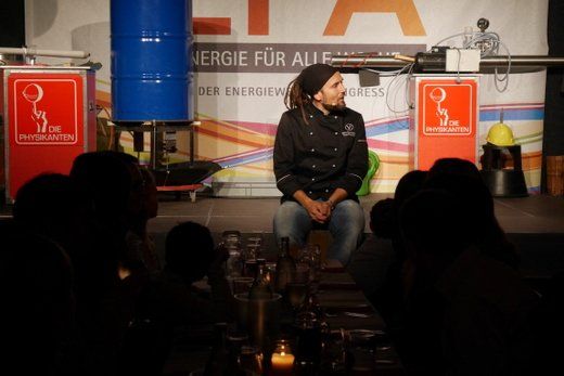 Mit eindrucksvollsten, physikalischen Phänomenen, die es auf der Bühne zu erleben gabt, haben Prof. Dr. Lieber¬mann und sein Assistent, in bester Comedy Manier, Wissen um die Physik erlebbar und auch hörbar, gemacht. Die Geheimnisse seiner veganen Küche hat Vegan-Spitzenkoch Björn Moschinski, nach dem „zweigleisigen“ Menü enthüllt. Das vegane Kassler (neuer Name FRITZ -die Physikanten) zum Beispiel, ist laut Zutatenliste eine Mischung aus: Seitan (Wasser, WEIZENeiweiß;) 83%, Kokosfett, Hefeextrakt, Steinsalz, Zwiebeln, HAFERfaser, Aroma, Flohsamenpulver, Verdickungsmittel Johannisbrotkernmehl, WEIZENstärke, Farbstoff: Eisenoxid, Rauch.