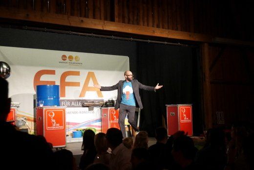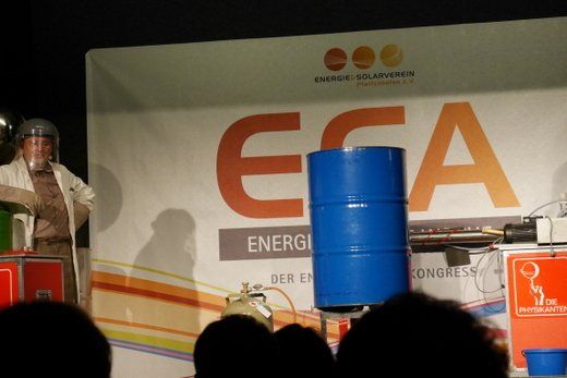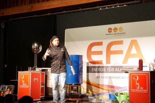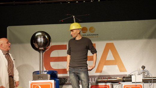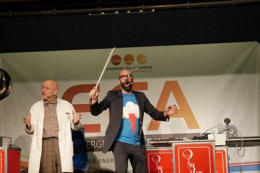 Die Physikanten sind keine Unbekannten mehr bei der Energie für Alle Woche, auch in diesem Jahr erfuhren die Gäste spektakuläre Aha-Erlebnisse aus der Welt der Physik. Zwischen den Gängen eines exquisiten 3-Gänge-Menüs von Vegan-Spitzenkoch Björn Moschinski und bayerisch-traditionell aus der Stockerhof-Küche, krachte es gewaltig.