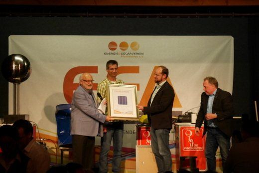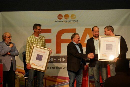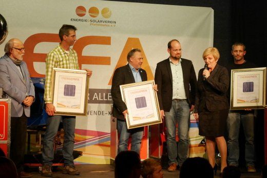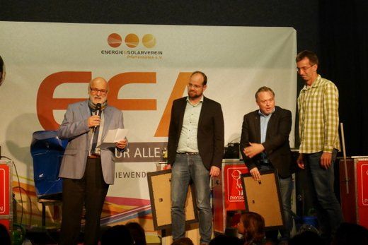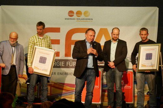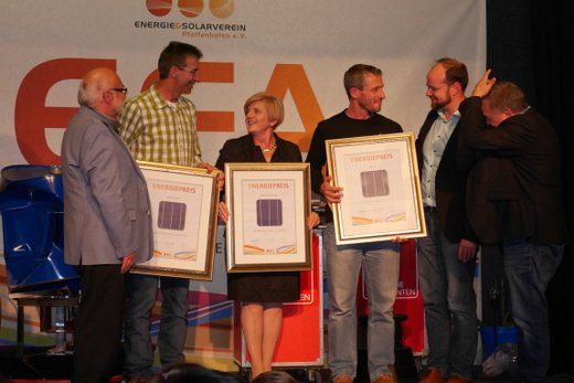 Die Laudatio hielt die Vorstandschaft des Energie- und Solarverein Pfaffenhofen, Andreas Herschmann, Dr. Helmut Muthig und Markus Käser.