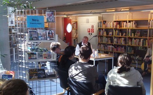 Zu einer ersten „Brezenrunde“ hatte der Leiter der Kreisbücherei Stephan Ligl Anfang Oktober in die Kreisbücherei Pfaffenhofen eingeladen. Unter dem Titel „Von Mundart bis Poetry Slam“ lasen Gerhard Walter, Tabea Kretzschmar und Lukas Weißenberger in gemütlicher und zwangloser Runde aus ihren Werken. Die drei Autoren gehören zur „Silbenschmiede Pfaffenhofen“ - eine offene Gruppe für alle Autoren, Hobbyschreiber, Dichter und Wortartisten in und um Pfaffenhofen. „Bei den Autoren stach vor allem die große Bandbreite heraus – vom reiferen Mundartdichter bis zu den jungen Poetry-Slammern – die aber auch andere Texte drauf hatten“, so Stephan Ligl. Das Publikum war ähnlich wie die Autoren sehr gemischt – von jung bis alt. „Und die meisten waren von Anfang bis Ende da – was auf ehrliches Interesse an regionalen Autoren schließen lässt“, freut sich der Büchereileiter. Die Brezenrunde findet jeweils am ersten Samstag im Monat in der Kreisbücherei statt. Autoren aus der Region kommen und lesen aus ihren eigenen Werken. Die Zuhörer zahlen keinen Eintritt, sondern können frei kommen und gehen, wie und wann sie wollen. Wer sich der Lesung hingeben will, kann sich bei einer Tasse Kaffee und einer Breze dazu gesellen. Die nächste Brezenrunde findet am 5. November statt. Lesen werden Michael von Benkel und Alexander Bálly. Das Thema lautet: Nicht nur kriminelles.