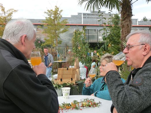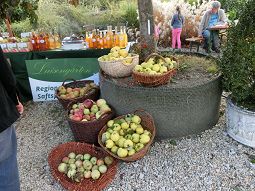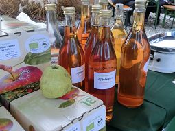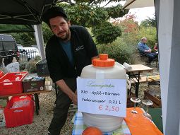 Der Apfel stand diesmal im Vordergrund, ob Spalierbäumchen, seltene und/oder bewährte Sorten, entzückende Zierapfelbäumchen bis hin zur wiederentdeckten Quitte - man konnte sich informieren, kaufen, verköstigen..... Die Luisengärten aus Riedenburg waren mit einem großen Stand vertreten, da gab es nicht nur Apfelsaft, sortenrein aus der gewünschten Apfelsorte gepresst, sondern auch Federweißen aus Bioäpfeln und -birnen, Cidre und vieles mehr, das gerne direkt am Stand verköstigt wurde.