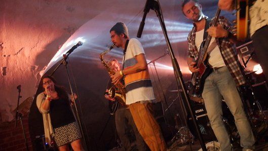 Sentilo Sono sprang dann als Schlussakt für Salome Fur ein, die zwecks Familiengestaltung pausieren mussten. Feiner Ska mit Blasmusik und schnellen Gigs, deutsche Texte und Bühnenerfahrung, Stimmung bis in den Morgen.