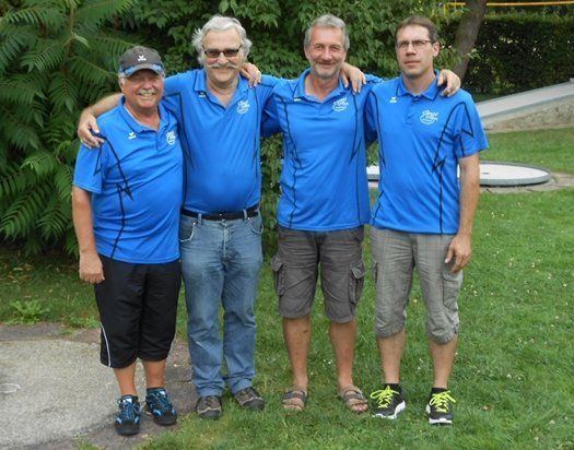 Die Finalisten der 3. Matchplay-Vereinsmeisterschaft des Miniaturgolf-Clubs Wolnzach (v.l.) Anton Rudolf (4. Pl.), Gerhard Pischel (2. Pl.), Sebastian Solleder (1.Pl.) und Klaus Huber (3.Pl.).