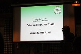 Nachdem dieser die Jahressportberichte der durchaus erfolgreichen Junioren vorgestellt hatte, folgten auch die Berichte der Herren- und Seniorenmannschaften und der Abteilungsleitung. Besondere Highlights dabei waren zum Beispiel die Sparkassenpokalverteidigung der B-Jugend, oder das Auslandsturnier in Kroatien der A-Jugend. Auch die Herren, die in der vergangenen Saison den 2. Tabellenplatz belegten hielten ihre gute Form und belegen auch in der neuen Saison aktuell den 2. Platz.