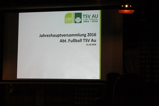 Über zwei Stunden saßen am 21.10.2016 viele Mitglieder und Verantwortliche des TSV Au´s zusammen und ließen das vergangene Jahr Revue passieren. Nach der Begrüßung der Mitglieder und Vorstellung der Tagespunkte verkündete bereits Tobias Schreck, 1. Abteilungsleiter, dass er im Winter sein Amt nach zwei Jahren ablegen werde. Auch sein Kollege Stefan Kühnel, bisheriger Großfeld-Jugendleiter, werde im Winter sein Amt ablegen, seine Aufgabe als A-Jugendtrainer werde er aber fortsetzen.