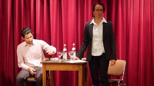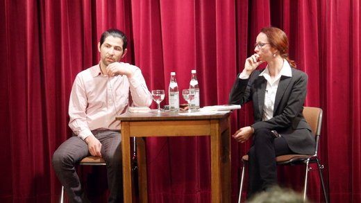 In ruhigen Worten erzählt Hassan Al Djan von den Umständen die zu der Autobiographie führten die er mit Hilfe der Journalistin Veronica Frenzel verfasste. Oft stockt er in den Sätzen, ist offensichtlich ganz in der gerade gelesenen Situation. Beim Vater der stirbt, dem LKW unter dem er flieht, dem Sozialarbeiter in Deutschland, dem ersten Eindruck in einem deutschen Haus, viel Momente werden im gut gefüllten Theatersaal wieder Gegenwart.