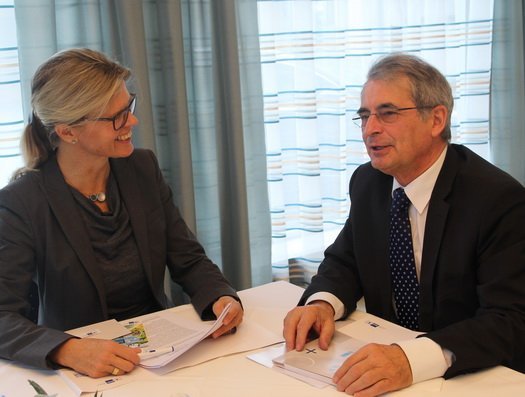 Eduard Kastner, Vorsitzender des Regionalausschusses Pfaffenhofen, im Gespräch mit IHK-Geschäftsführerin Elke Christian.