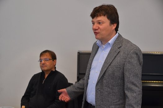 Leisten unschätzbare Arbeit für schwerkranke Menschen: Facharzt und Palliativmediziner Wolfgang Moll (l.) und Palliativpfleger Christian Hallbauer bei ihrem Vortrag.
