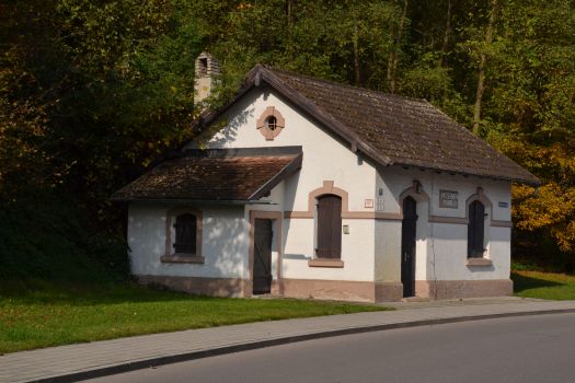 Nächste Station war das alte Wasserwerk-Haus an der Hofmarkstraße, das im übrigen ein denkmalgeschütztes Gebäude ist. Da es direkt am Hang steht und dieser durch Regen und Erosion gegen die Rückwand des Gebäudes drückt, soll hinter dem Haus ein Stück freigebaggert sowie Bäume gefällt oder geschnitten werden. Außerdem sollen auf Wunsch des Ortsbild-Verschönerungsprojekts links und rechts vom Gebäude jeweils eine kleine Sitz- und Ruhezone entstehen, damit das Ganze besser aussieht. Umgesetzt wird das Ganze in 2017.