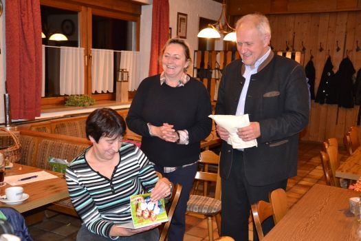 Josef Kraus bekam als Dank von der Vorsitzenden Christine Schwarzmeier ein selbstgemachtes Hopfenkissen und seine mitgereiste Gattin den neuen Landfrauen-Kalender überreicht.