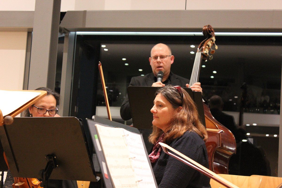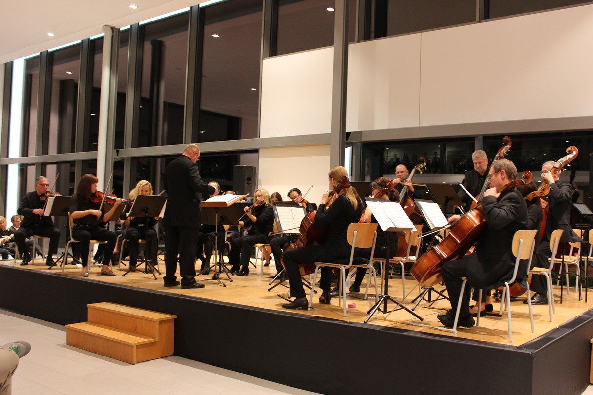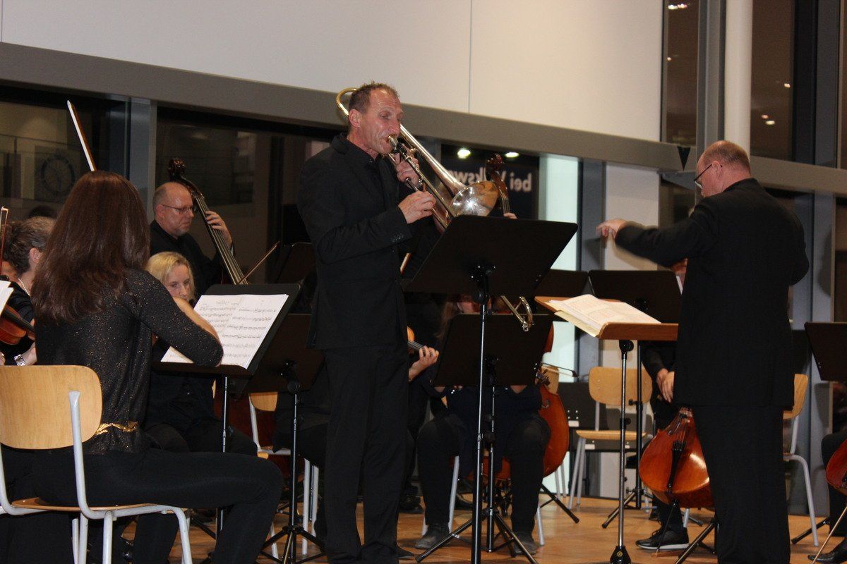Ansonsten erklangen in der Köhler Ausstellungshalle Stücke für Streicherorchester von Georg Philipp Telemann, F. Mendelssohn-Bartholdy (Sinfonia Nr. 9), Mortimer (Trombone Concerto Nr. 3) und vielen mehr. Auch eine Uraufführung der Filmmusik von “Legenden der Leidenschaft” (G. Boesl) ertönte.