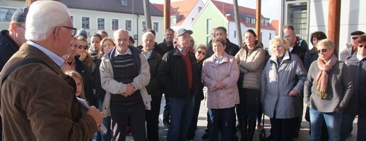 Über 50 Interessierte waren zur letzten Führung des Marktflüsteres in diesem Jahr gekommen, der selbst schon ein wenig verblüfft war. „Hoffentlich macht meine Stimme das mit“, so Niedermeier gleich zu Beginn. Doch diese Befürchtung löste sich schnell in Wohlgefallen auf. Gebannt lauschten die Wolnzacher den Worten Niedermeiers und folgten ihm auf der Spur des Bieres quer durch den Markt.
